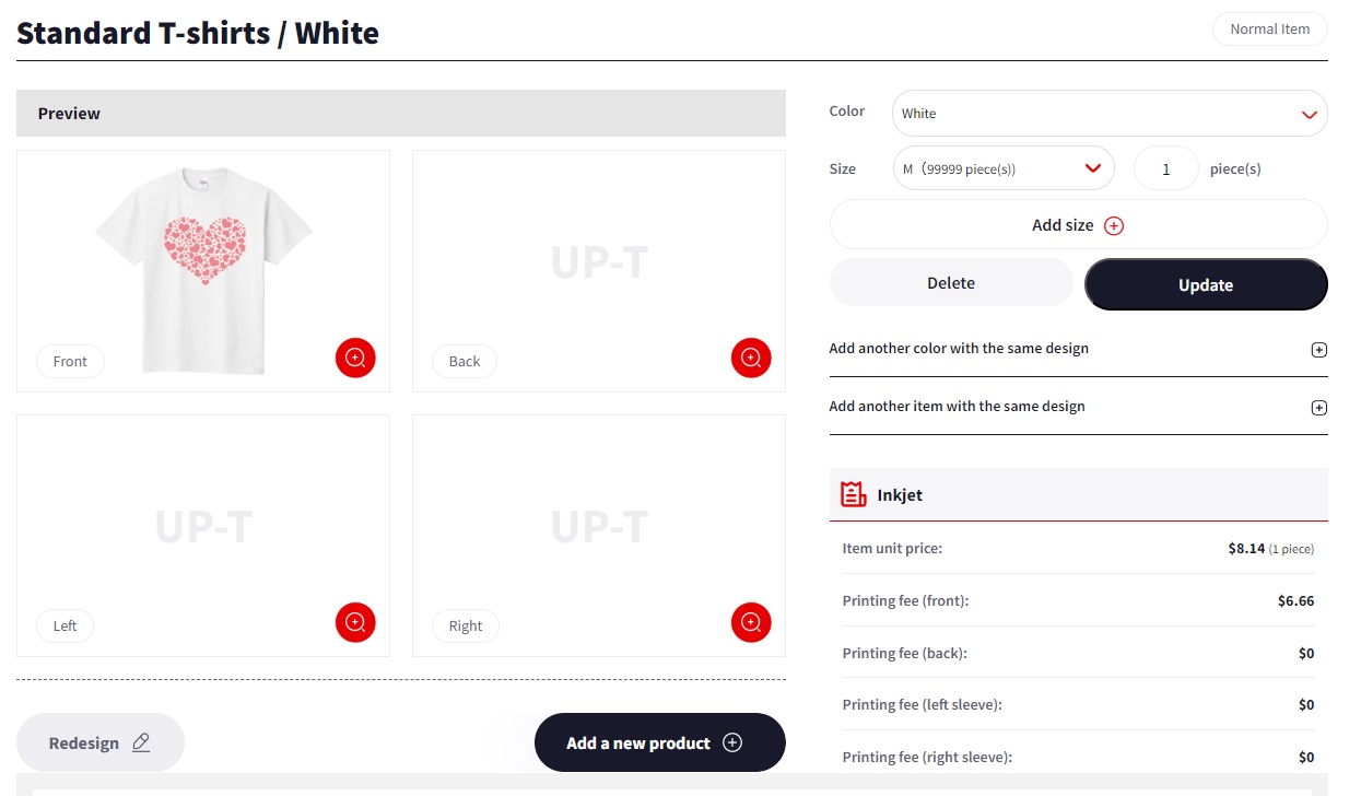 Purchases can be made not only on T-shirts designed by the designer, but also by applying the design to other shirts.